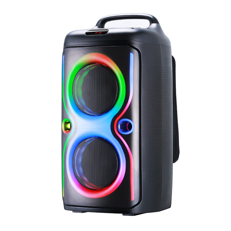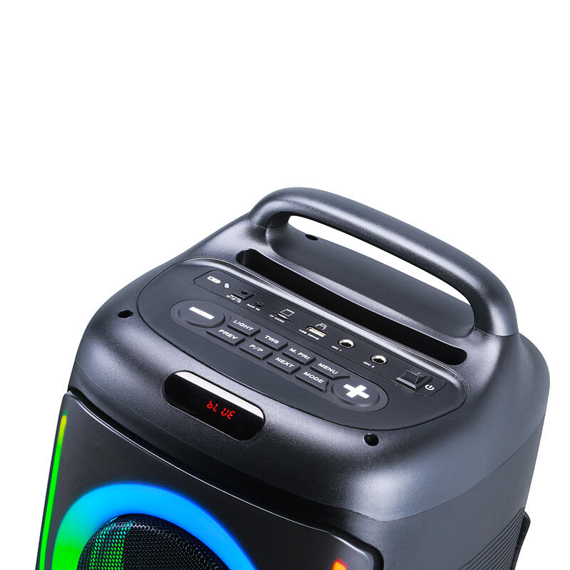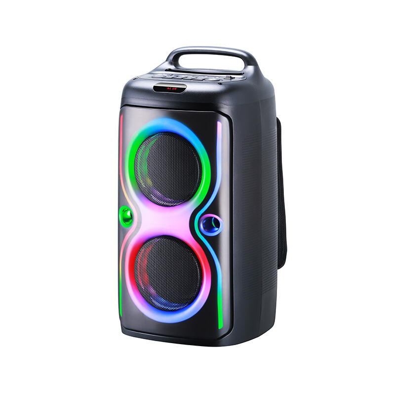 Equipped with a rich array of functions, it supports MP3, Bluetooth, USB, TF card, FM radio, TWS, and AUX playback, meeting diverse audio source needs. The built-in wireless microphone function and dedicated microphone interface make it perfect for karaoke sessions, live shows, or speeches, with a remote control for convenient long-distance operation. Colorful lights sync with the music rhythm, adding a vivid disco atmosphere to any gathering. Powered by a 7.4V/3600mAh lithium battery, it provides long-lasting playback without frequent recharging. Packaged in an exquisite color box, it is not only a practical audio device but also an ideal gifting option. Whether for home disco parties, outdoor camping, or family gatherings, this speaker fulfills all entertainment and audio needs.